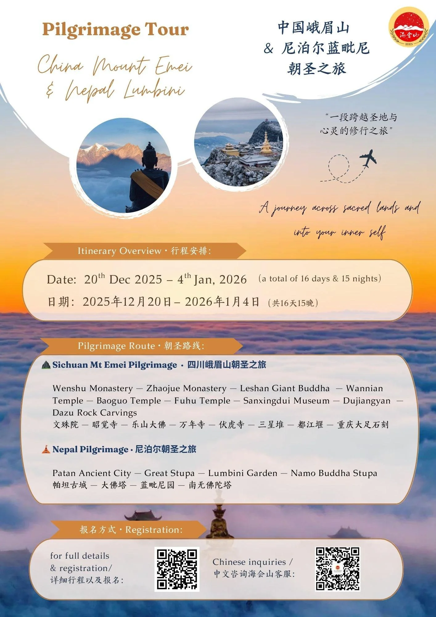 The Pilgrimage is for a total of 16 days and 15 nights from 20th December 2025 - 4th January 2026.